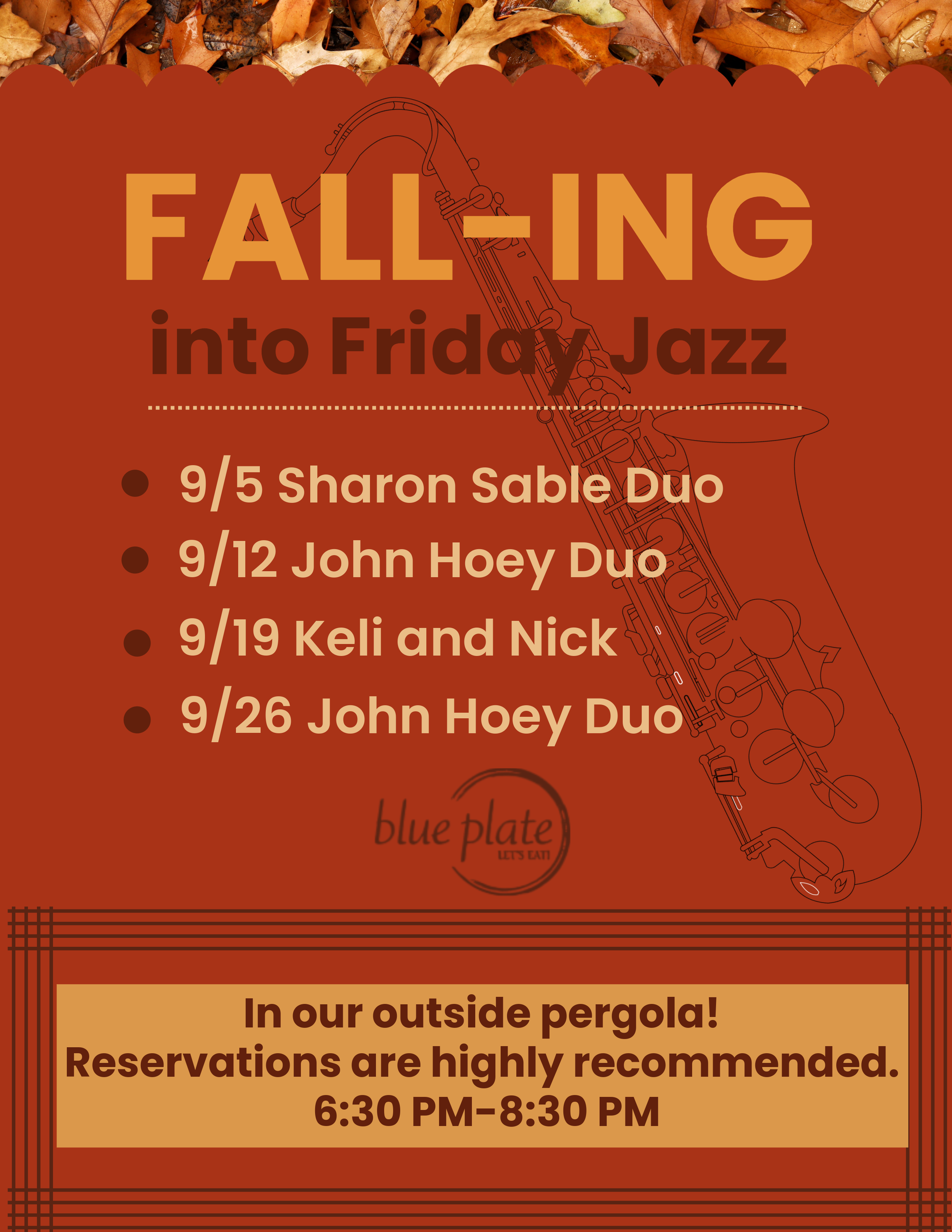 We’re bringing more music to your week—our live Jazz nights now happen every Friday in September! Savor the crisp Fall evenings under our cozy, heated pergola while enjoying chef-crafted dishes and smooth, Jazzy tunes.